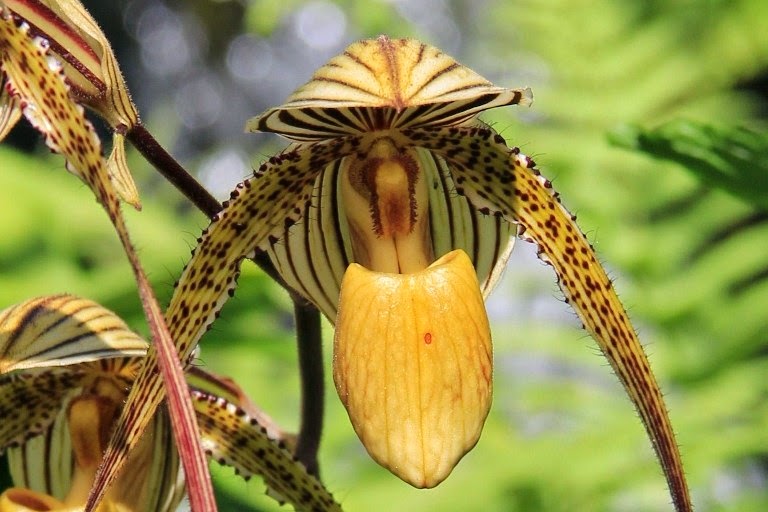 This was an exotic orchid in the butterfly house. I think it was some kind of Lady Slipper, but that wasn't the name that was on it.